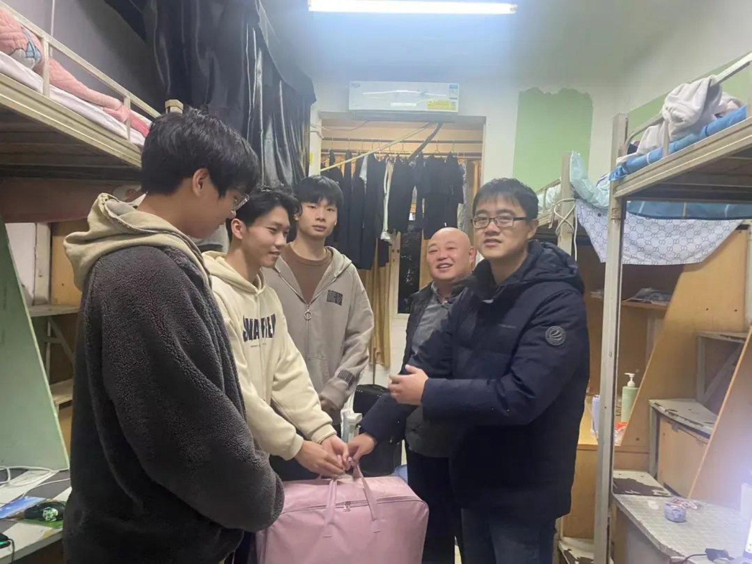 寒风凛冽天地间,关怀之情暖心田。12月4日晚20:00,艺术学院开展“冬季送温暖”关怀慰问活动,学院党委副书记张子建、学工办副主任游佳以及新生辅导员任国文、顾琳琳一同走进学生寝室,为家庭经济困难学生送去冬日实用的暖心物资,同时也送上了来自学院的关心问候。